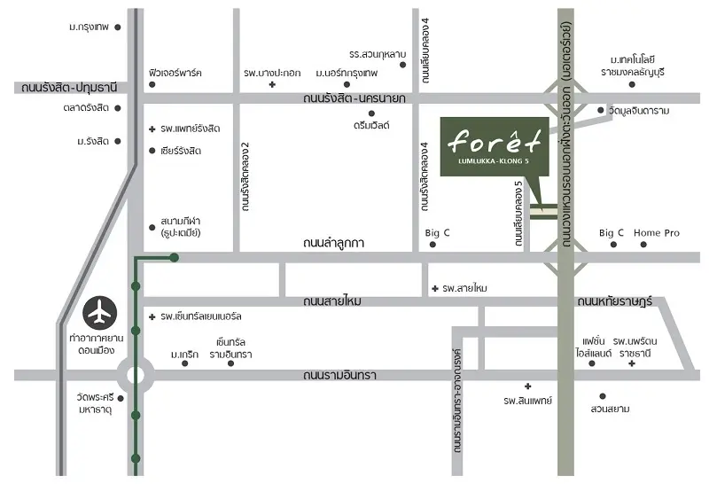 Foret ลำลูกกา-คลอง 5 ออกแบบด้วยแนวคิด “Oxygen Community” ที่เน้นให้ผู้อยู่อาศัยได้อยู่ร่วมกับธรรมชาติมากขึ้น ภายใต้สภาพแวดล้อมและบรรยากาศการอยู่อาศัยที่ดี พร้อมสะดวกทุกการเดินทาง ด้วยใกล้ทางด่วน และติดถนน 2 ฝั่ง