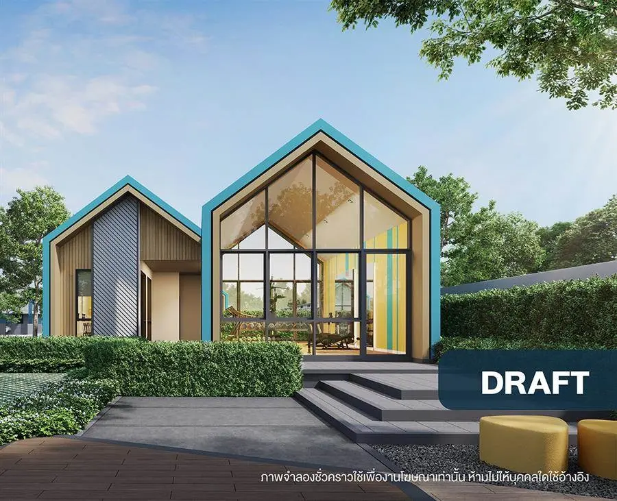 มีแบบบ้านให้เลือก 1 แบบ โดยออกแบบมาในสไตล์ Simple and Stylish ที่เน้นโทนอาคารสีขาว/เทา/ไม้ ที่ดินบ้าน เริ่มต้น 16 ตร.ว.ขึ้นไป พื้นที่ใช้สอย ประมาณ 105 ตร.ม. ฟังก์ชันครบ คุ้มค่า ด้วยขนาด 3 ห้องนอน 2 ห้องน้ำ 2 ที่จอดรถ