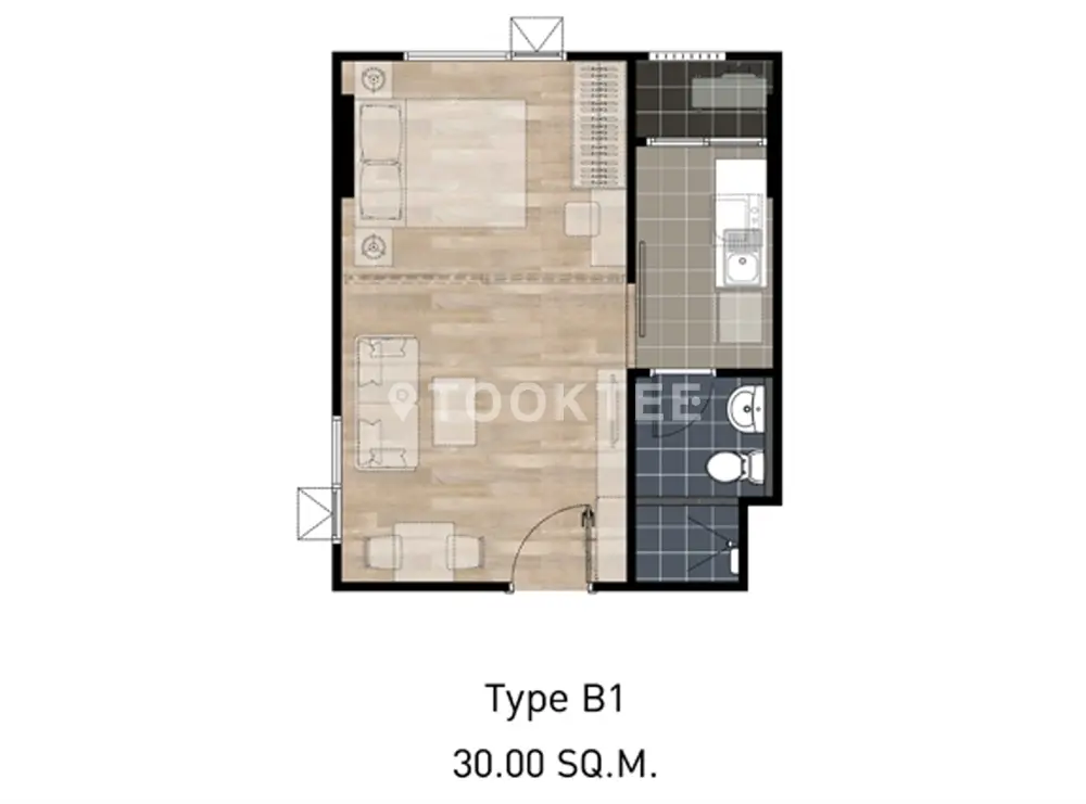 พัฒนาเป็นอาคารชุดสูง 8 ชั้น จำนวน 1 อาคาร มีหน่วยขายทั้งหมด 152 หน่วย ประกอบไปด้วยรูปแบบห้องแบบสตูดิโอขนาด 22.50 ตารางเมตร แบบ 1 ห้องนอน ขนาด 30.00-30.50 ตารางเมตร และแบบ 2 ห้องนอน ขนาด 42.50 ตารางเมตร พักอาศัยตั้งแต่ชั้น 2-8 ส่วนบริเวณชั้น 1 เป็นพื้นที่จ